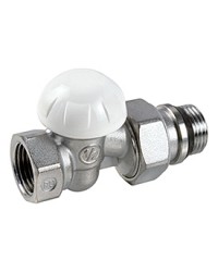 Detentore dritto per valvola R421 per tubo ferro in ottone cromato. Campo di temperatura