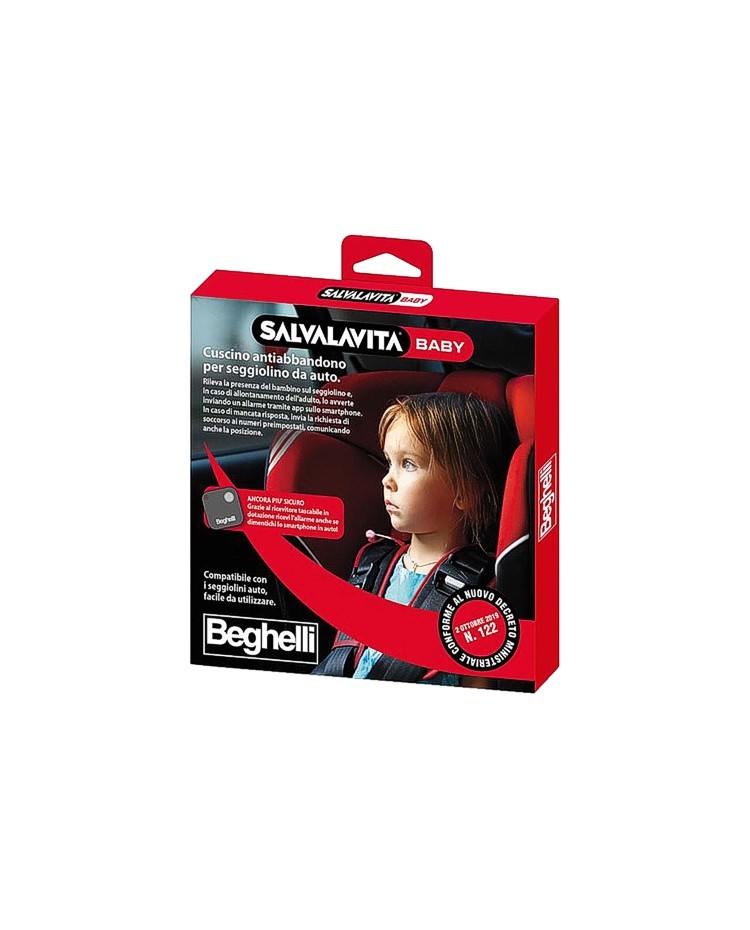 Il cuscino Salvavita Baby è semplice ed efficace: rileva la presenza del bambino sul seggiolino da auto grazie ad un sensore di peso. Se l'adulto si allontana ed il bambino è lasciato incustodito nel veicolo, viene inviata una notifica di allarme all'app Salvalavita Baby sullo smartphone. In caso di mancata risposta, la funzione "Avvisa gli altri" consente di avvisare familiari o amici ai numeri preimpostati: questi riceveranno la notifica completa della posizione (con le coordinate gps), in modo da permettere un rapido intervento. Grazie al ricevitore tascabile, l'adulto riceve l'allarme anche se dimentica lo smartphone in auto.