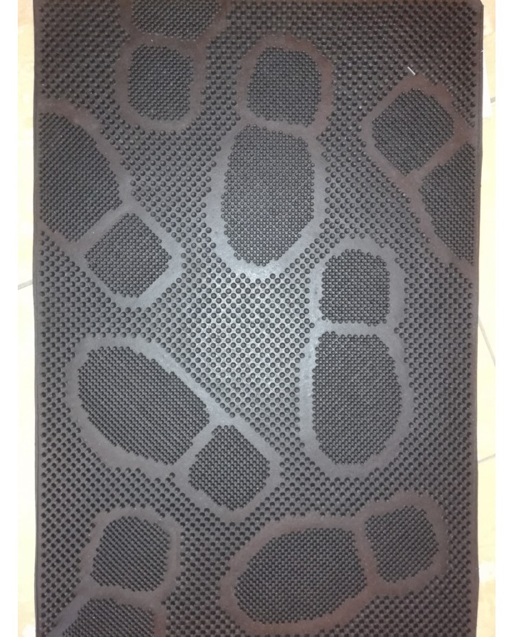 Zerbino in gomma 100% con parte superiore rivestita di piccoli piedini flessibili in gomma che trattengono lo sporco, grattandolo via dalle scarpe. Ideale per esterno, il materiale non assorbente si asciuga velocemente.