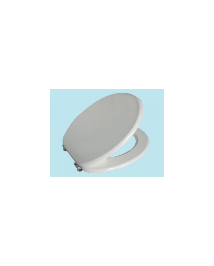 In MDF bianco con anello chiuso e coperchio, completo di cerniere di fissaggio in metallo. Adatto a tutti i WC.
