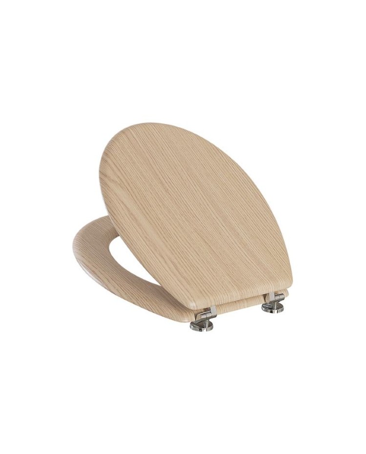 Copriwater universale 18'' in legno rovere, 3 Kg. Misure in cm: 43 x 37. Cerniere regolabili in metallo. Verniciatura idrorepellente.