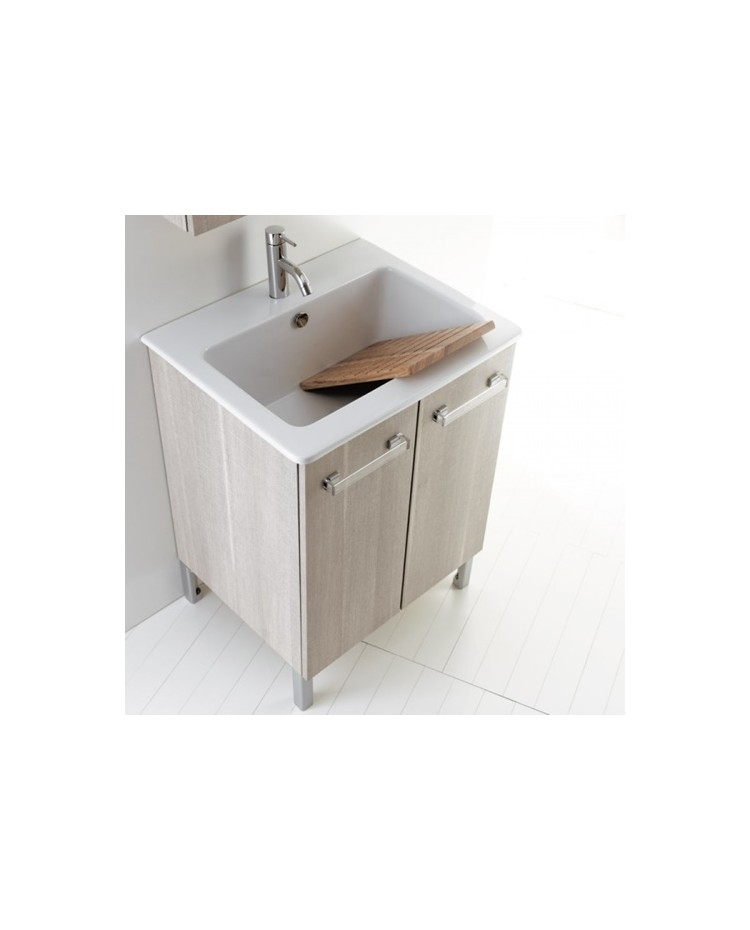 Mobile bagno lavanderia serie On Line con piedini finitura tranchè completo di lavabo