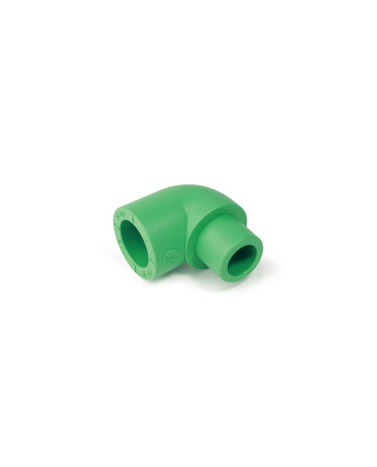 Gomito a 90° in Polipropilene Random con una tasca a saldare femmina e un attacco a saldare maschio, per impianti sanitari e riscaldamento. Idoneo per trasporto acqua potabile. Classi di utilizzo 1, 2, 4 e 5. Colore verde. Le caratteristiche tecniche del materiale lo rendono ottimale per la realizzazione di impianti destinati a trasportare acque potabili (anche in presenza di un elevato tasso di calcare) e liquidi alimentari, impianti di irrigazione per serre e giardini, impianti per la distribuzione di aria compressa o impianti di aspirazione o vuoto.