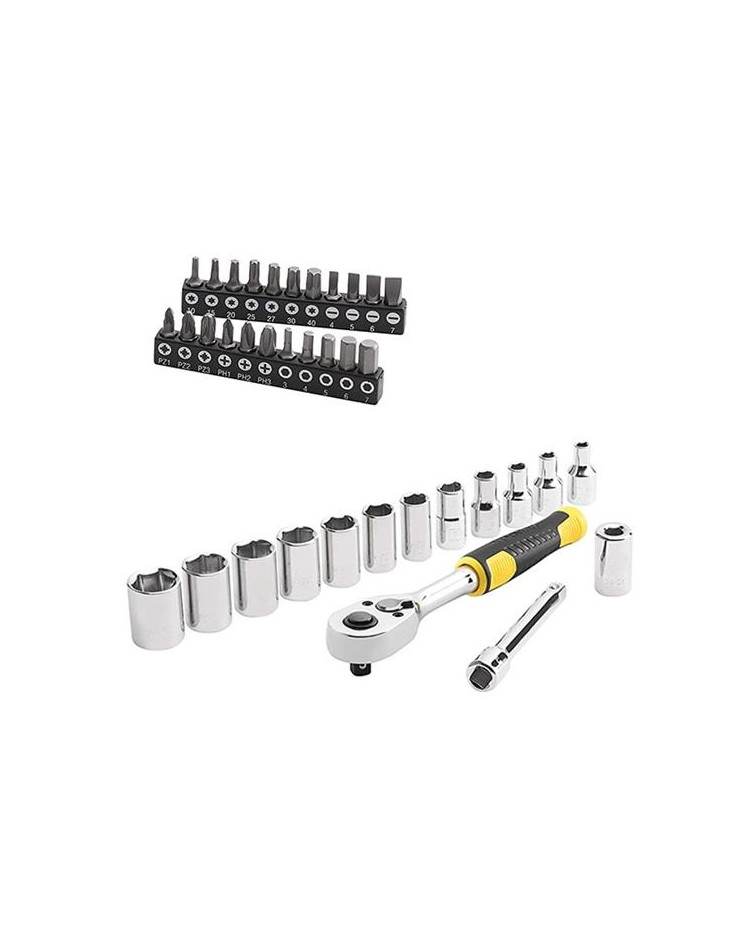 22 inserti att. 1/4” (Pz 1-2-3, Ph. 1-2-3, esag. 3-4-5-6-7 mm, Torx 10-15-20-25-27-30-40, std 4-5-6-7 mm).