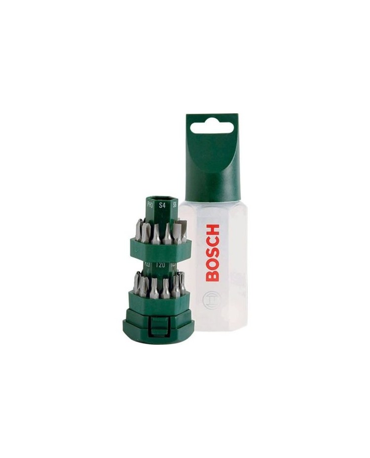 KIT INSERTI PER AVVITARE 25 PEZZI BOSCH BIG BIT Set 25 pezzi contenente: 24 bit di avvitamento lunghezza 25 mm. Phillips - Pozidrive - Standard. T portabit universale magnetico.