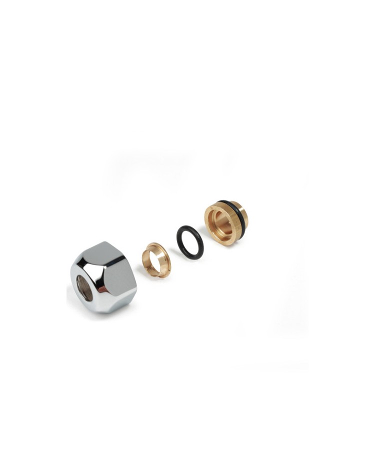 Adattatore per tubo di rame, per valvole e detentori per termoarredo a base 16. O-ring nero di tenuta in EPDM. Campo di temperatura 5÷110 °C. Pressione massima di esercizio 10 bar. Disponibile per tubo rame Ø 10, 12, 14, 15, 16 mm. Conforme alla norma EN681-1 e alla norma EN1254-2.